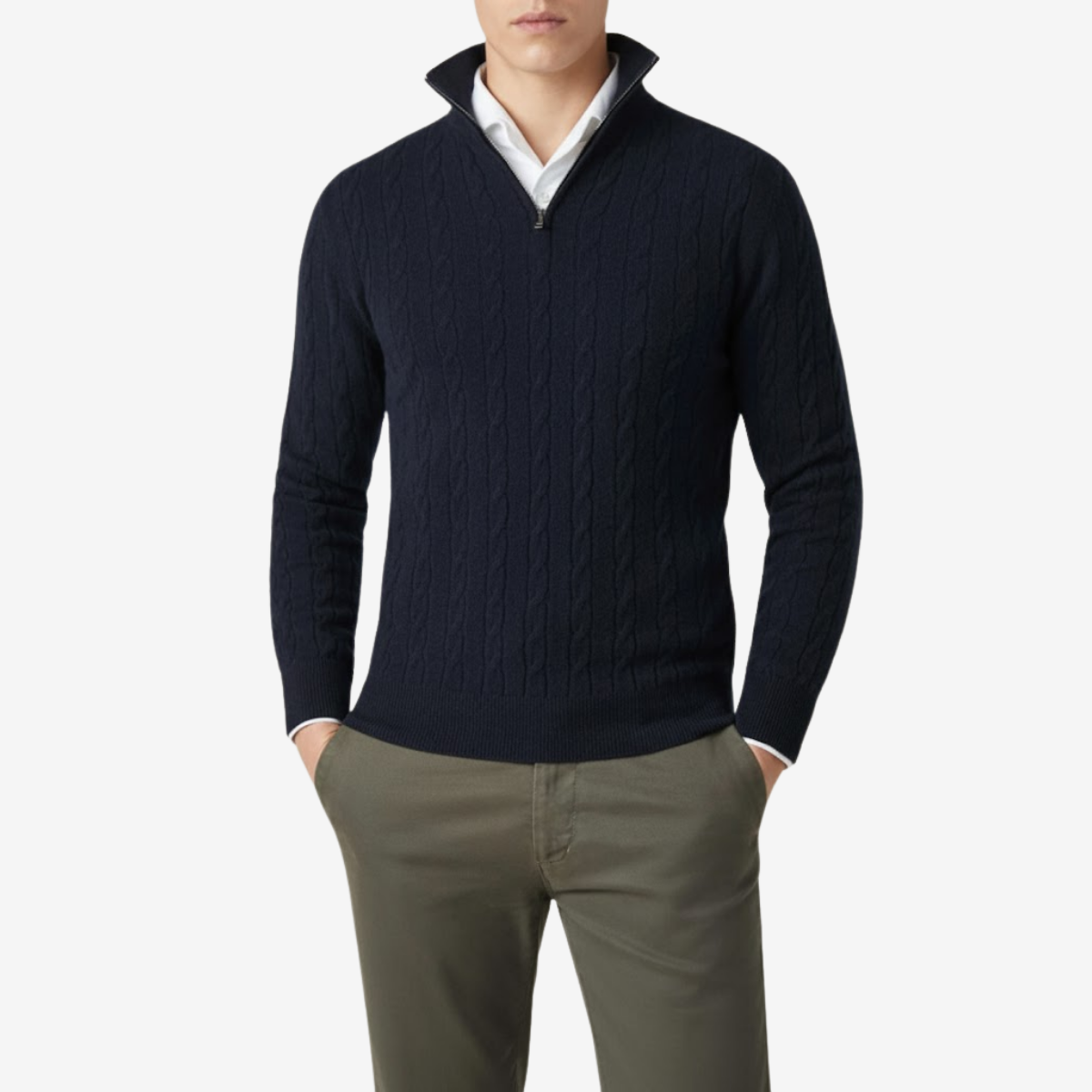 Men's Cable Knit Zipper Sweater – Adjustable Warmth & Textured Comfort